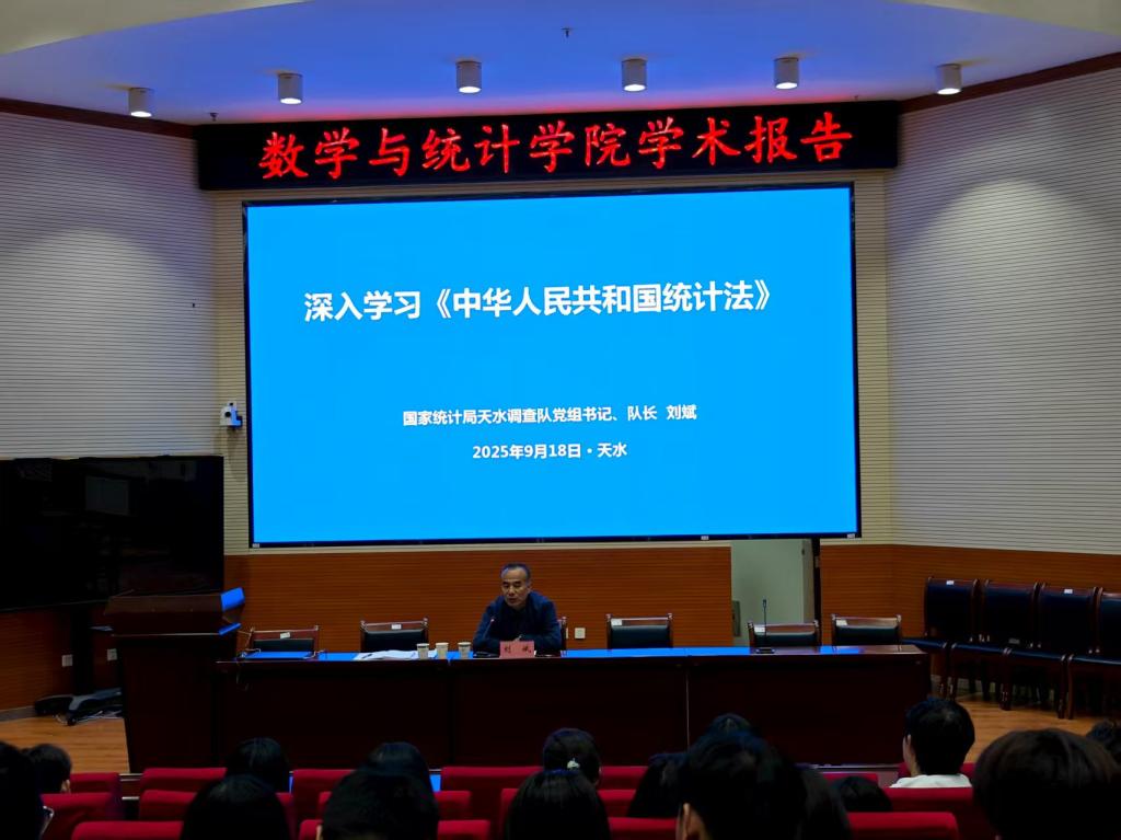 此次讲座旨在提升师生对统计法的认识,帮助学生理解统计工作的法律基础与职业道德,推动统计法治精神在高校教育中的落地与实践。据了解,数统学院和国家统计局天水调查队在学生实习实践、专业竞赛等方面已有较好的合作基础,接下来,双方将在科学研究和项目申报等方面探索合作新路径,为学生培养和专业发展提供更好的平台。