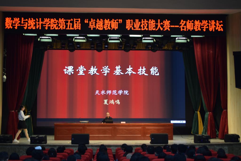 2020年11月12日晚,beat365英国官方网站第五届“卓越教师”职业技能大赛第一环节活动——名师教学讲坛在学校大礼堂开展,学院夏鸿鸣教授以《课堂教学基本技能》为主题为现场600余名学生作了专题讲座。