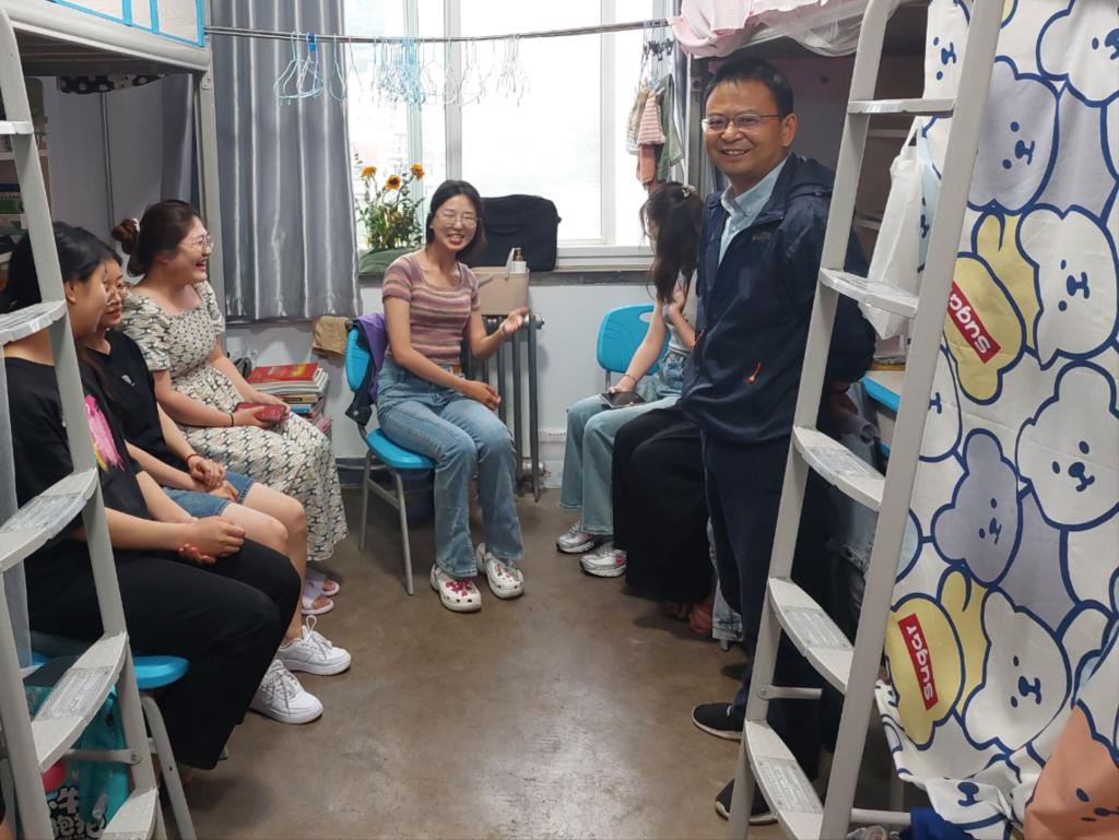 三餐四季,寒来暑往;骊歌唱响,扬帆远航。在2023届毕业生临别离母校、再踏新征程之际,2023年6月15日晚,beat365英国官方网站党政领导班子成员、毕业班班主任、辅导员及校企合作单位驻校负责人、学生干部等深入毕业生宿舍,与即将离校的毕业学子寄语话别,送上临别时的亲切问候与美好祝愿。