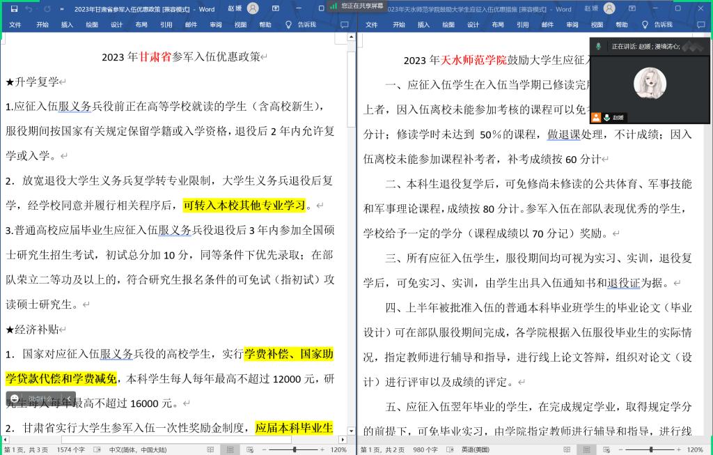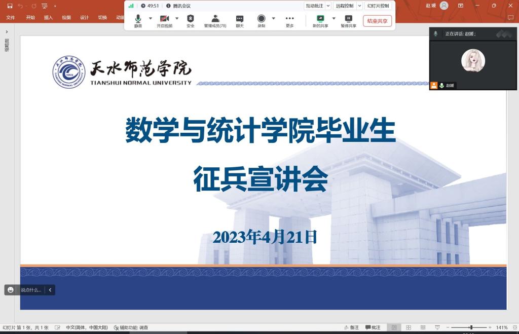 “携笔从戎 无上光荣”,为激发学院学生报效祖国、应征入伍的热情,帮助大学生了解、掌握应征入伍相关政策,营造应征光荣的浓厚氛围。2023年4月21日,beat365英国官方网站举办了2023年下半年大学生应征入伍政策解读宣讲会。宣讲会通过线上线下相结合的方式召开,会议由学院分管征兵工作的辅导员赵媛老师主持,学院26个班级的班长、团支书、大数据专业学生及学院有应征入伍意愿的学生参加了会议。