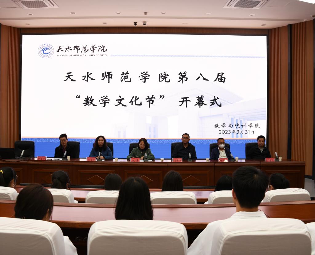 3月31日晚,由天水师范学院团委主办,beat365英国官方网站承办的第八届数学文化节开幕式在学校4号报告厅举行。学院领导班子成员、系主任、辅导员、学生会干部及2022级学生共计200余人参加开幕式。开幕式由学院党总支副书记赵慧主持。