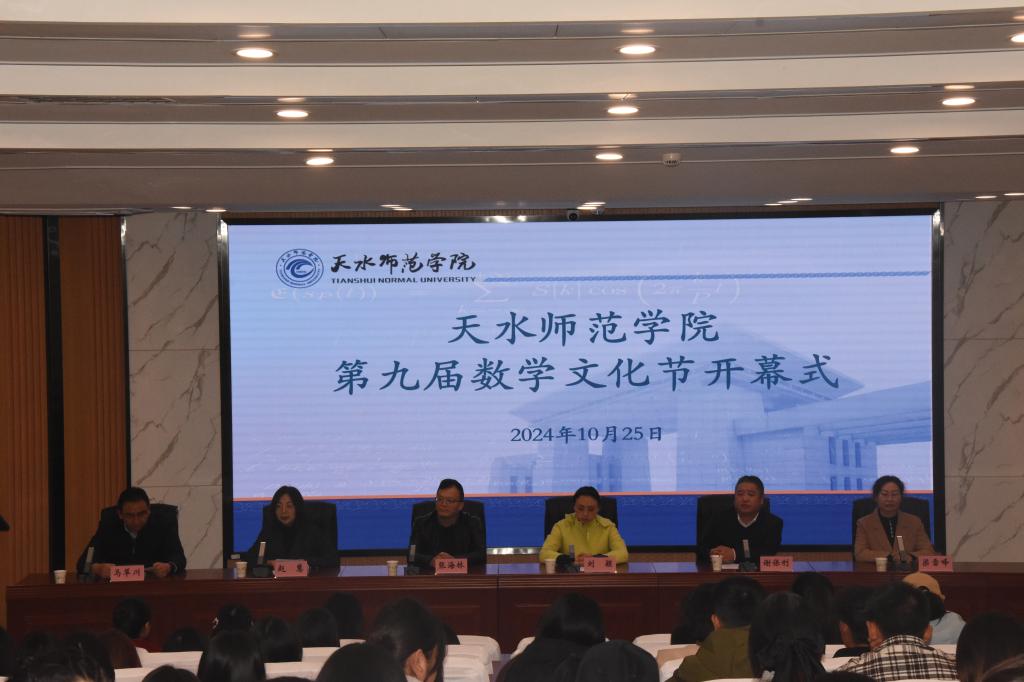 10月25日下午,天水师范学院第九届数学文化节开幕式在一号报告厅举行。文化节以“润数学文化,共赴数学‘π’对”为主题。学校团委书记刘颖,beat365英国官方网站全体领导班子成员、辅导员、师生代表等共计200余人参加。开幕式由学院党委副书记赵慧主持。